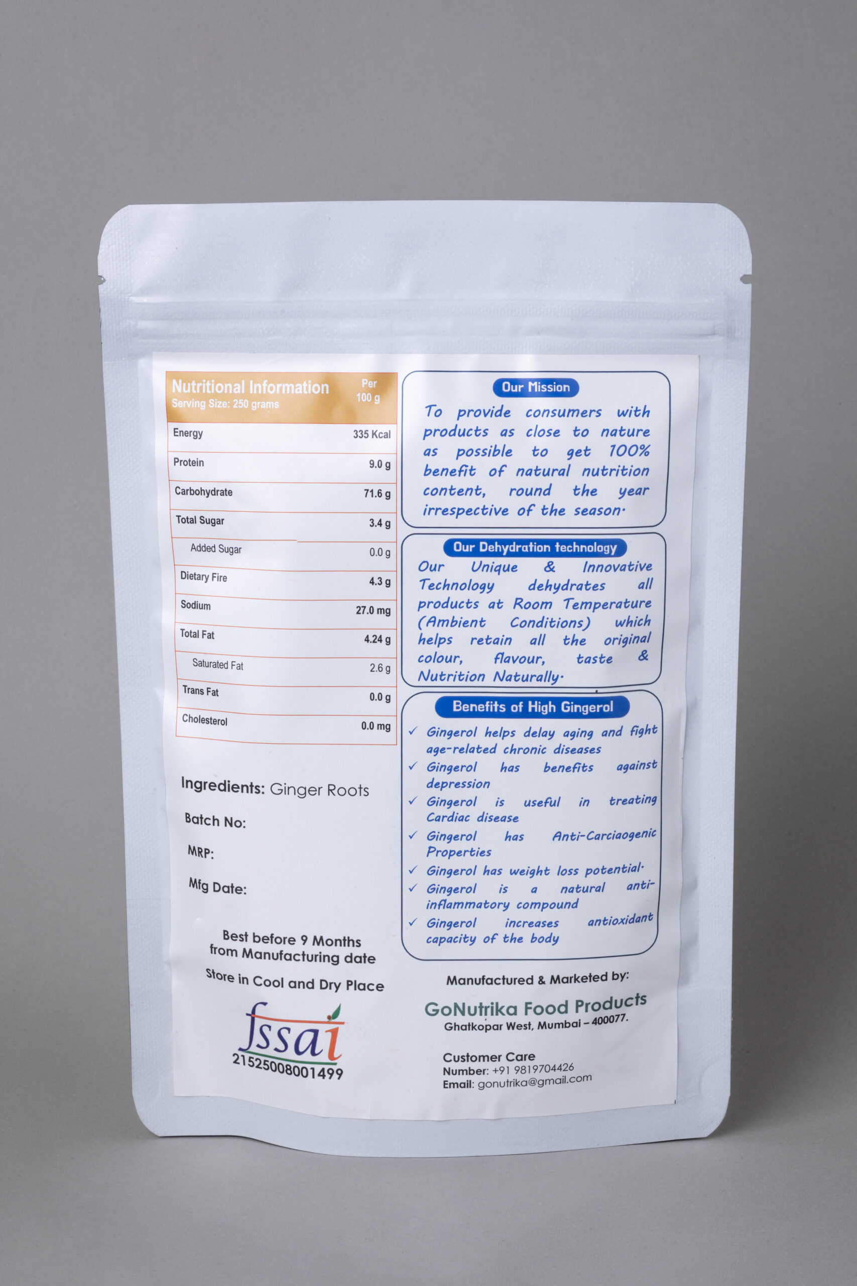 Nutritional value: Very High Gingerols Content