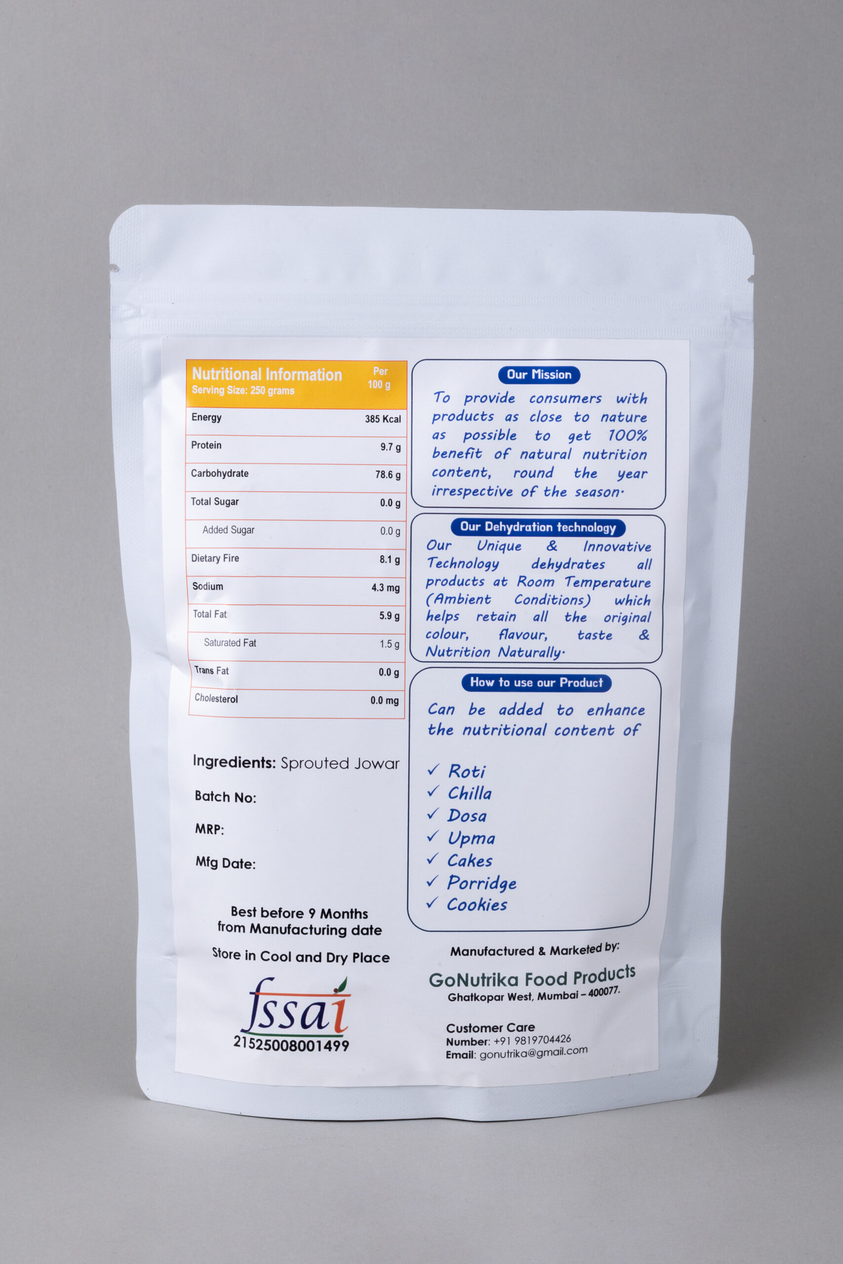 Ingredients:ย Sprouted Jowar