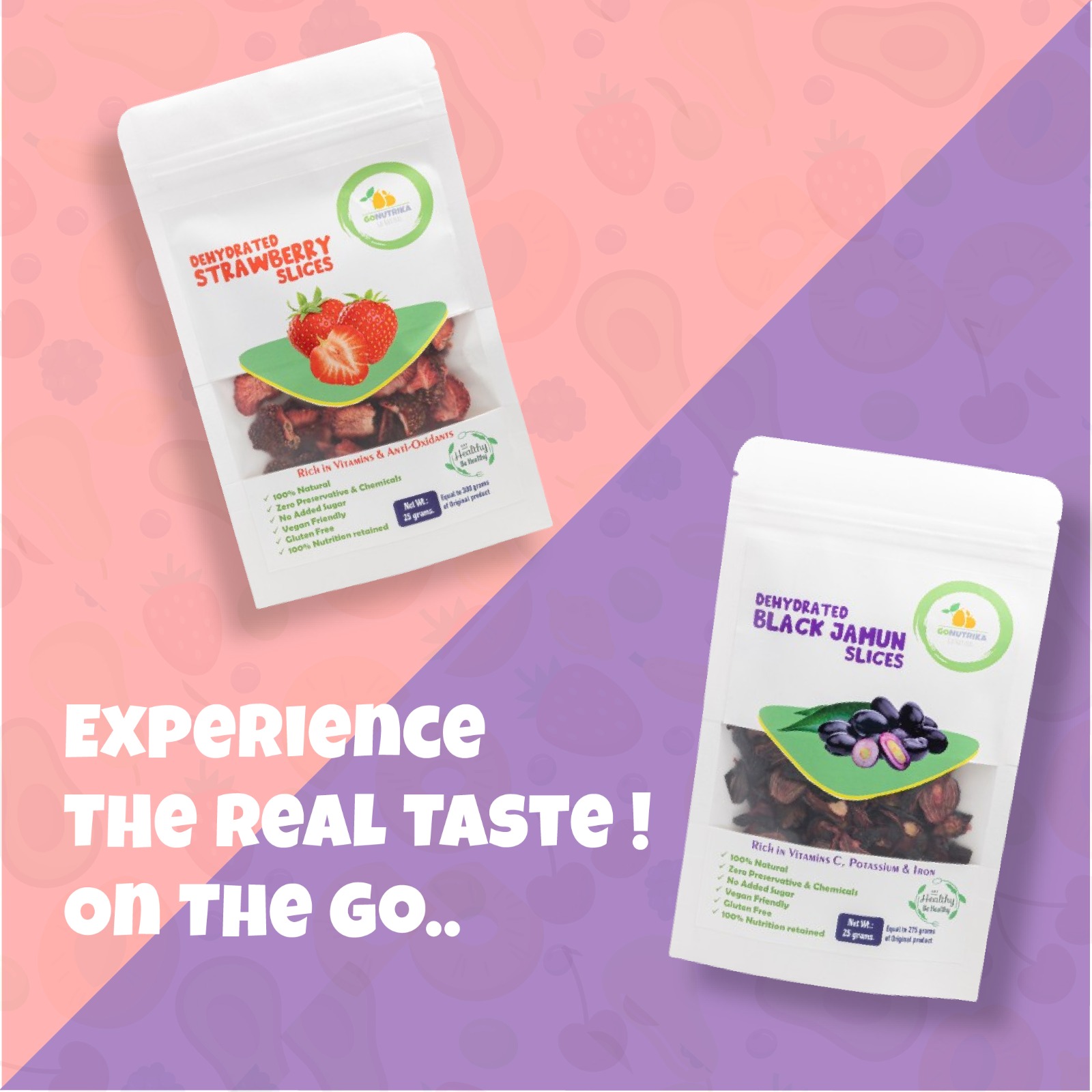 We dehydrate all our products at room temperature thereby retaining 100% of their natural taste, flavours & nutritional values !
